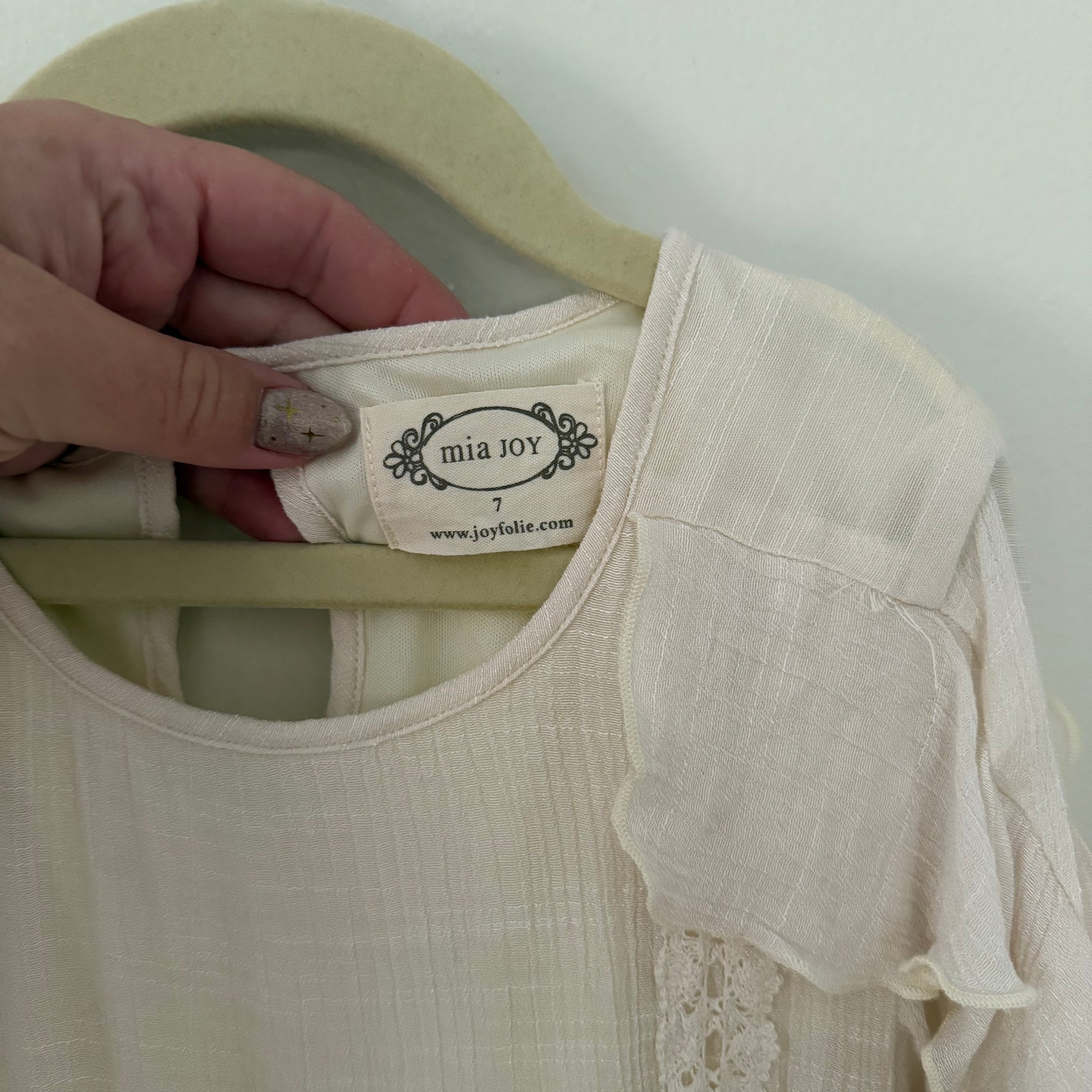 The sweet Joyfolie Mia Joy cream dress. Precious details on this one. Great for family photos, or a special event. Great worn condition, no flaws.