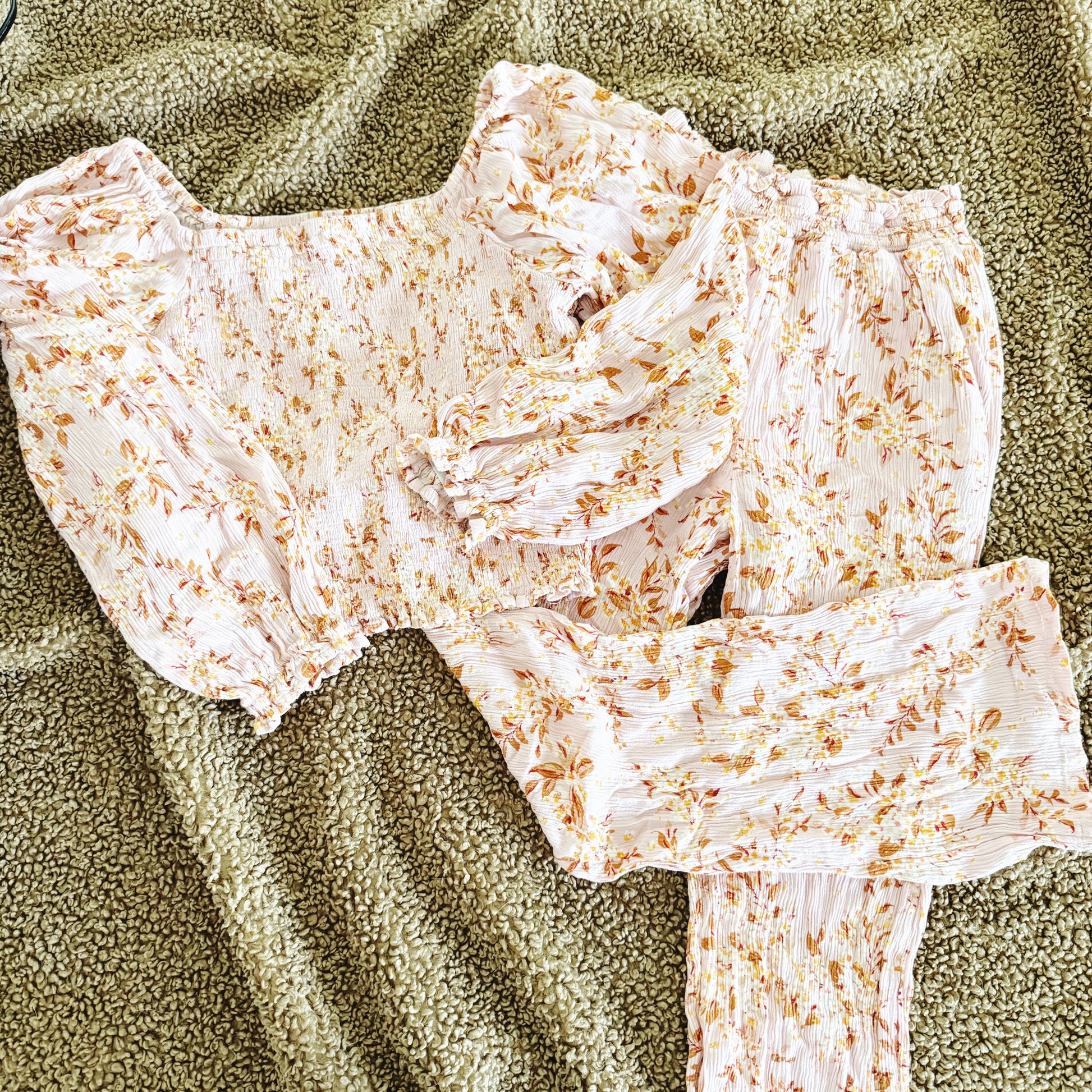 Adorable floral smocked set. Smocked top with puff sleeves. Elastic pants making them super comfy. Great worn condition.