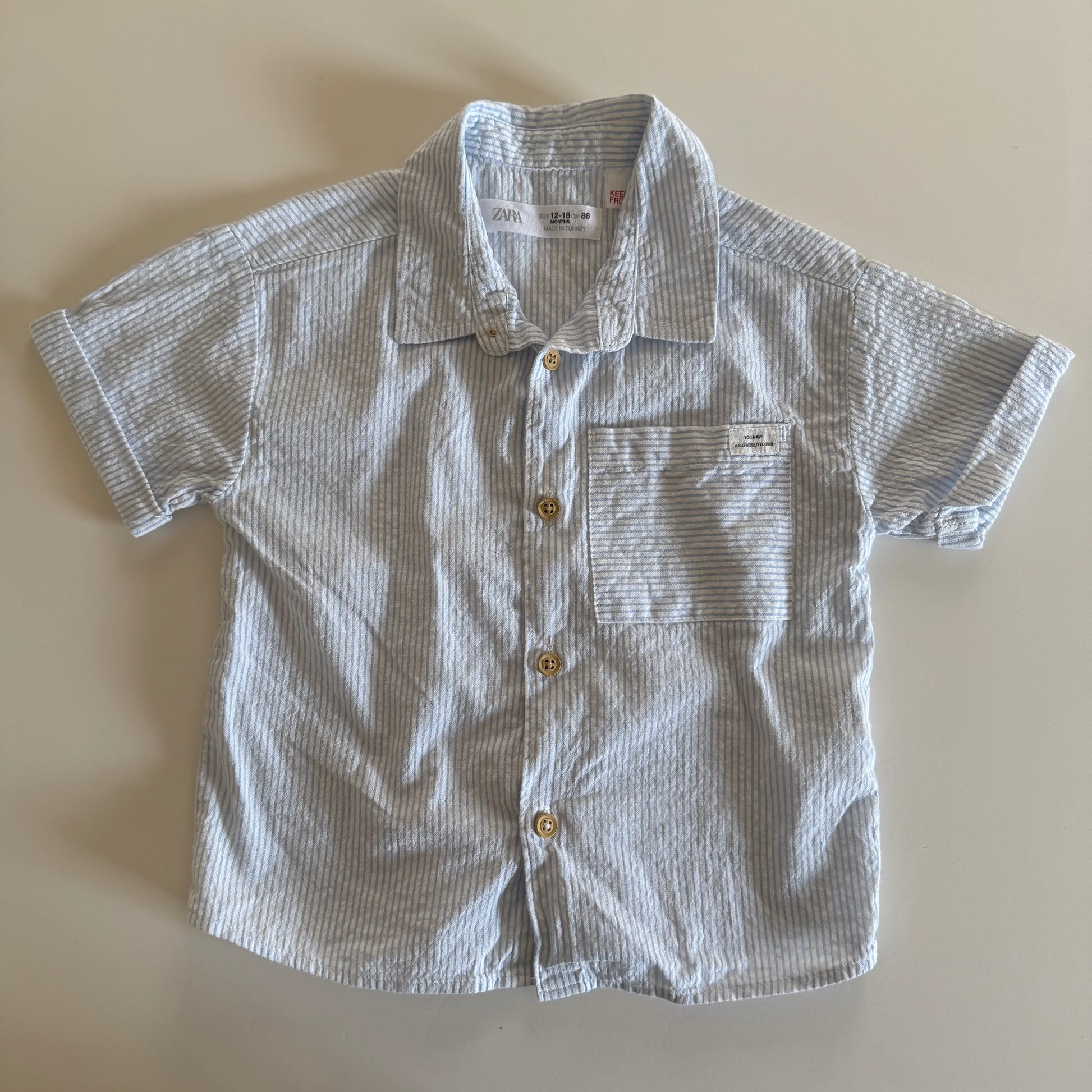 Perfect spring and summer staple. Blue and white subtle stripes with wooden button detail. Great condition.