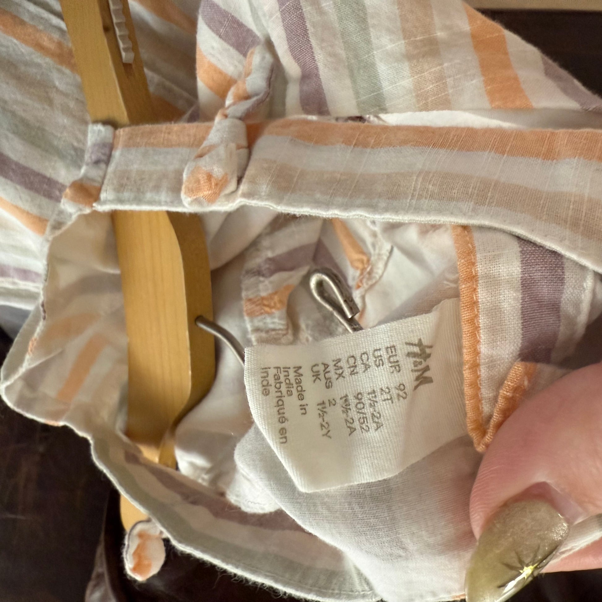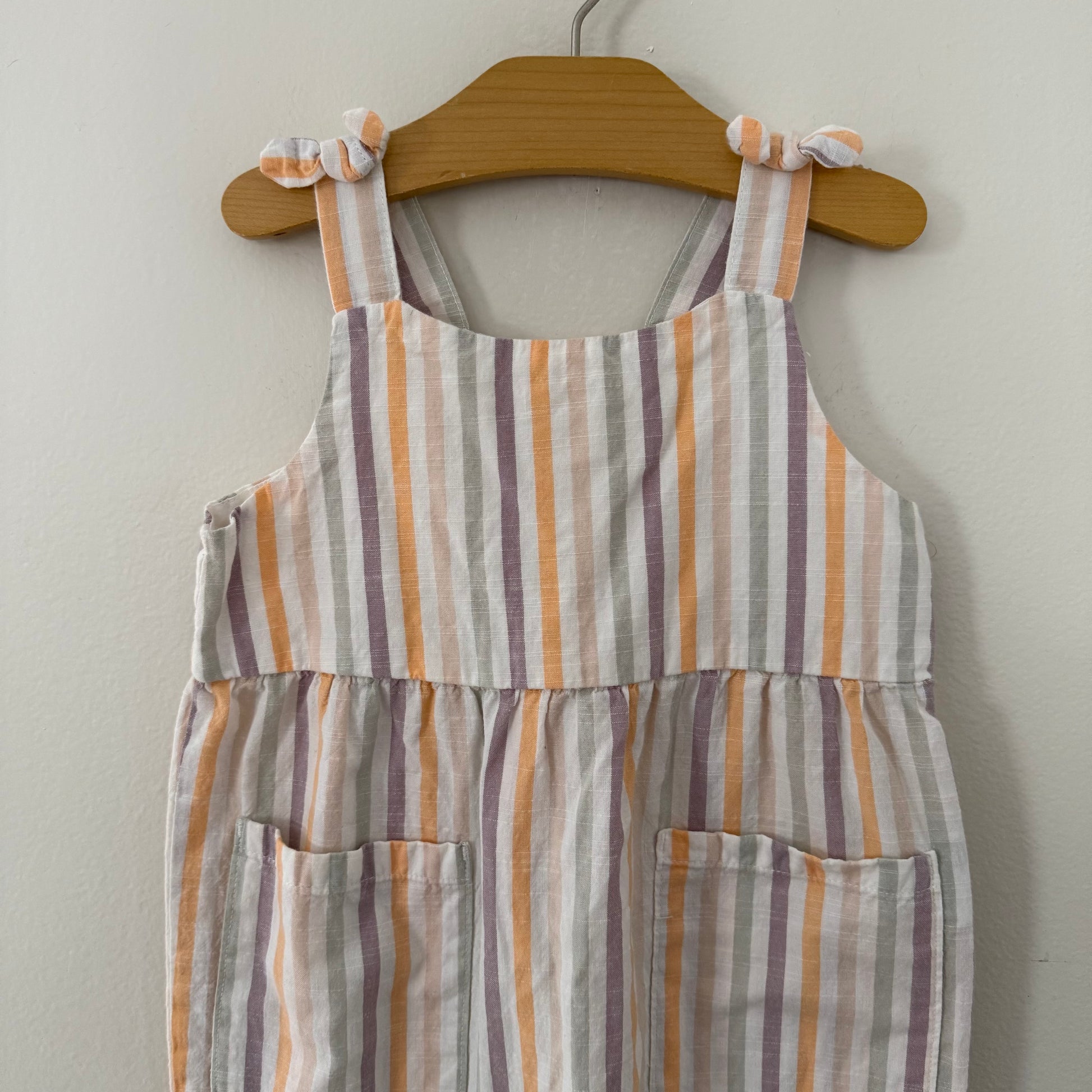 Adorable light and breezy romper with bow details on the straps. Button closure on the back. Such an easy outfit! Great condition.