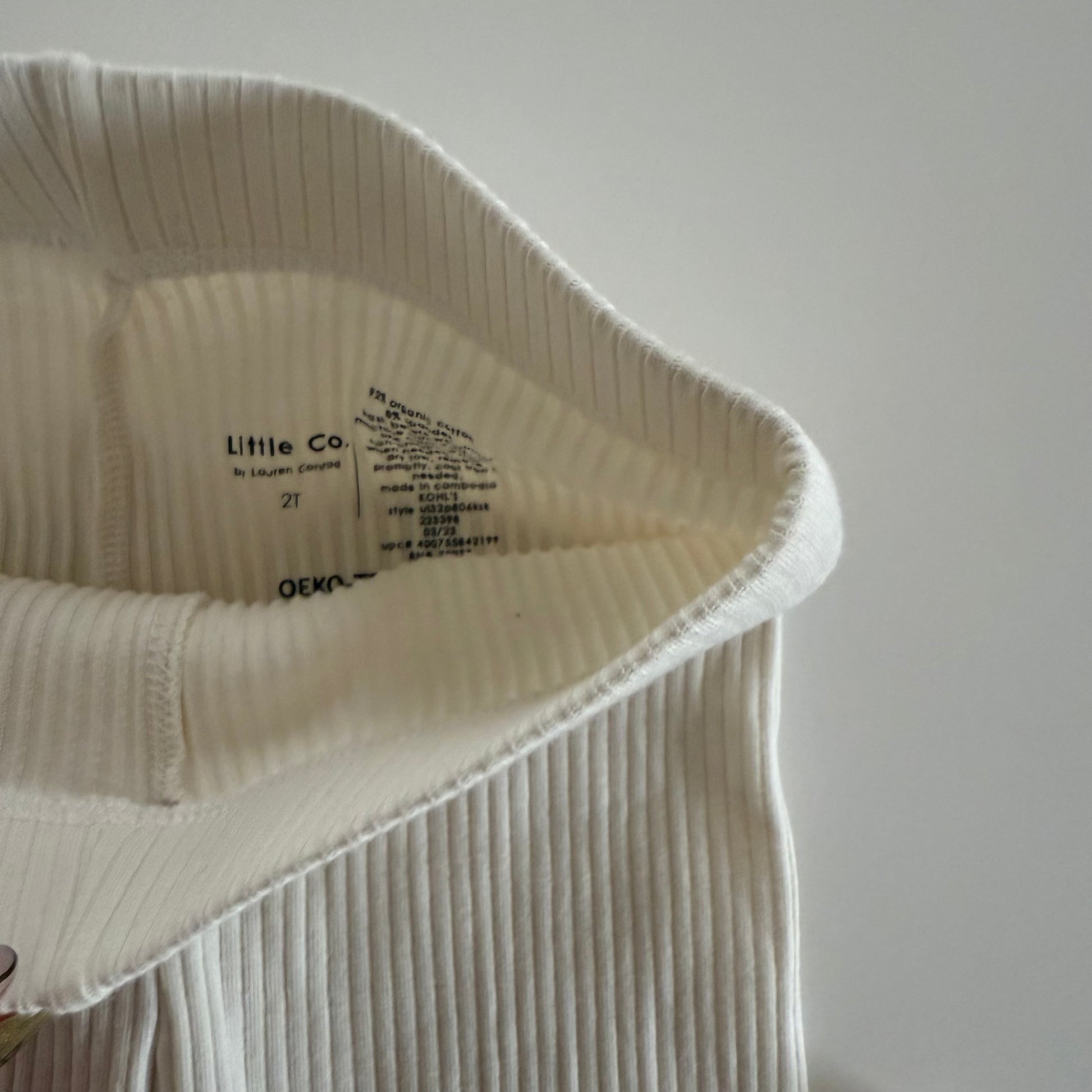 Cream colored ribbed leggings with lettuce edge hem by Little Co. Great condition.