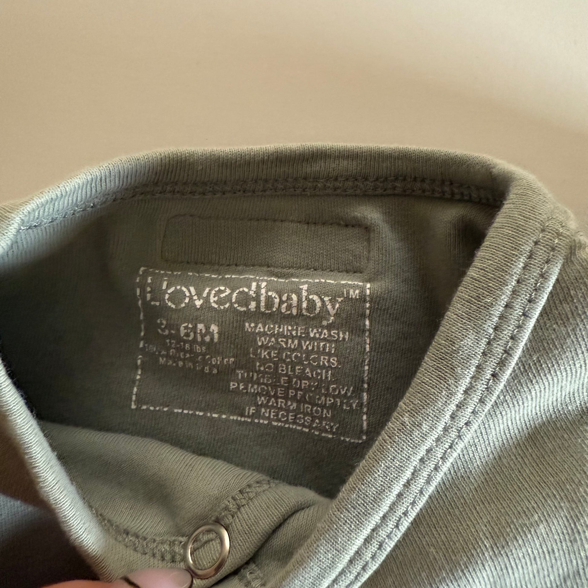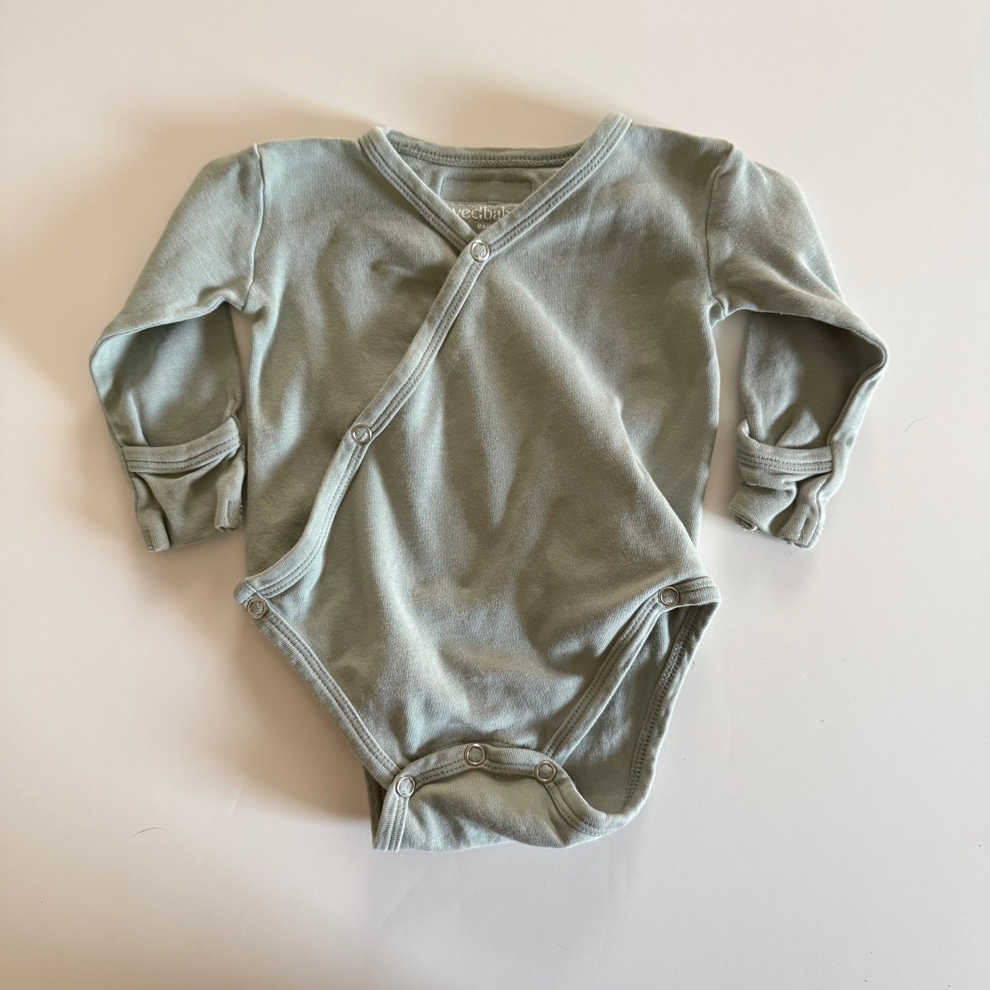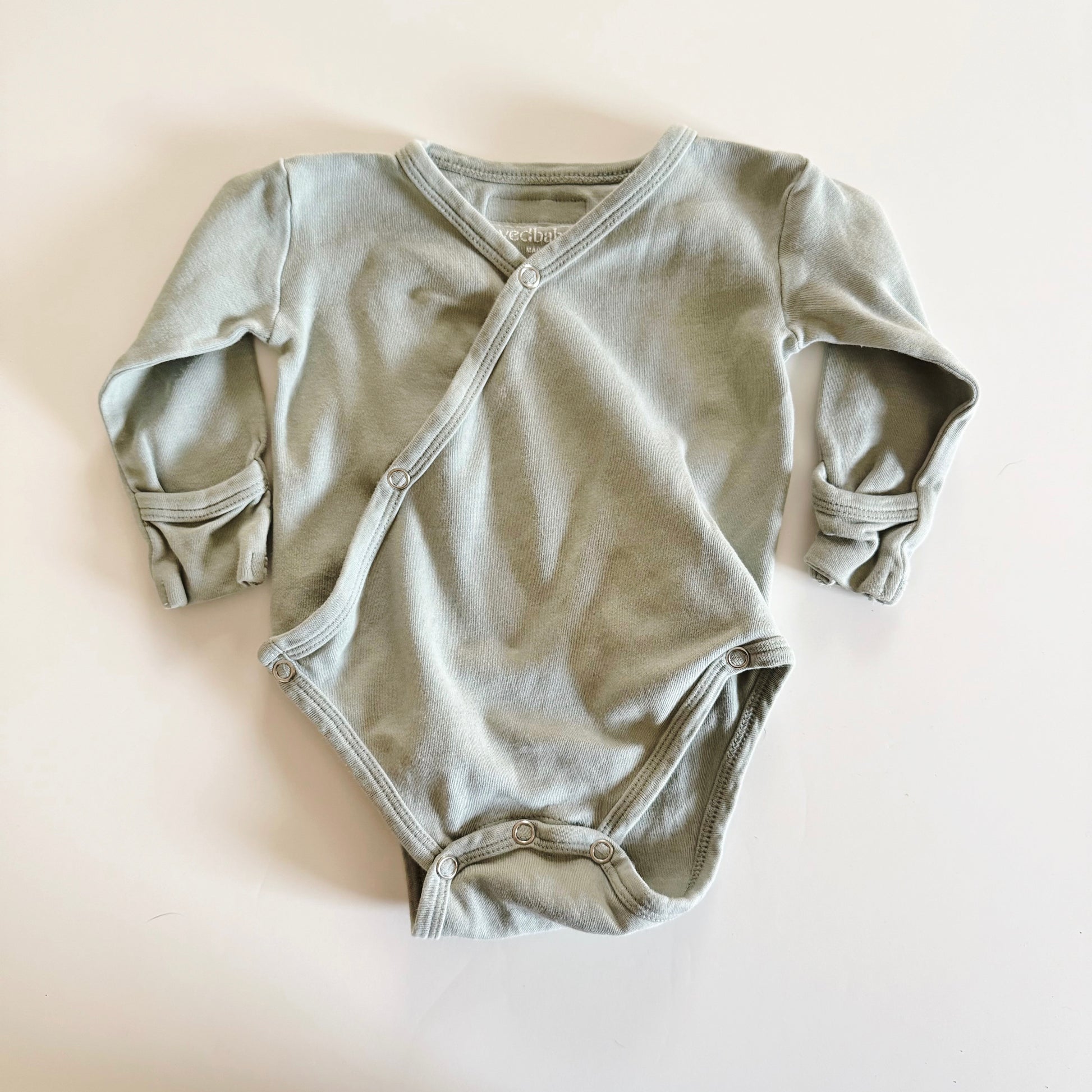 100% organic cotton. Kimono onesie by L’oved baby. Sage green color. Good condition. Some wash wear.