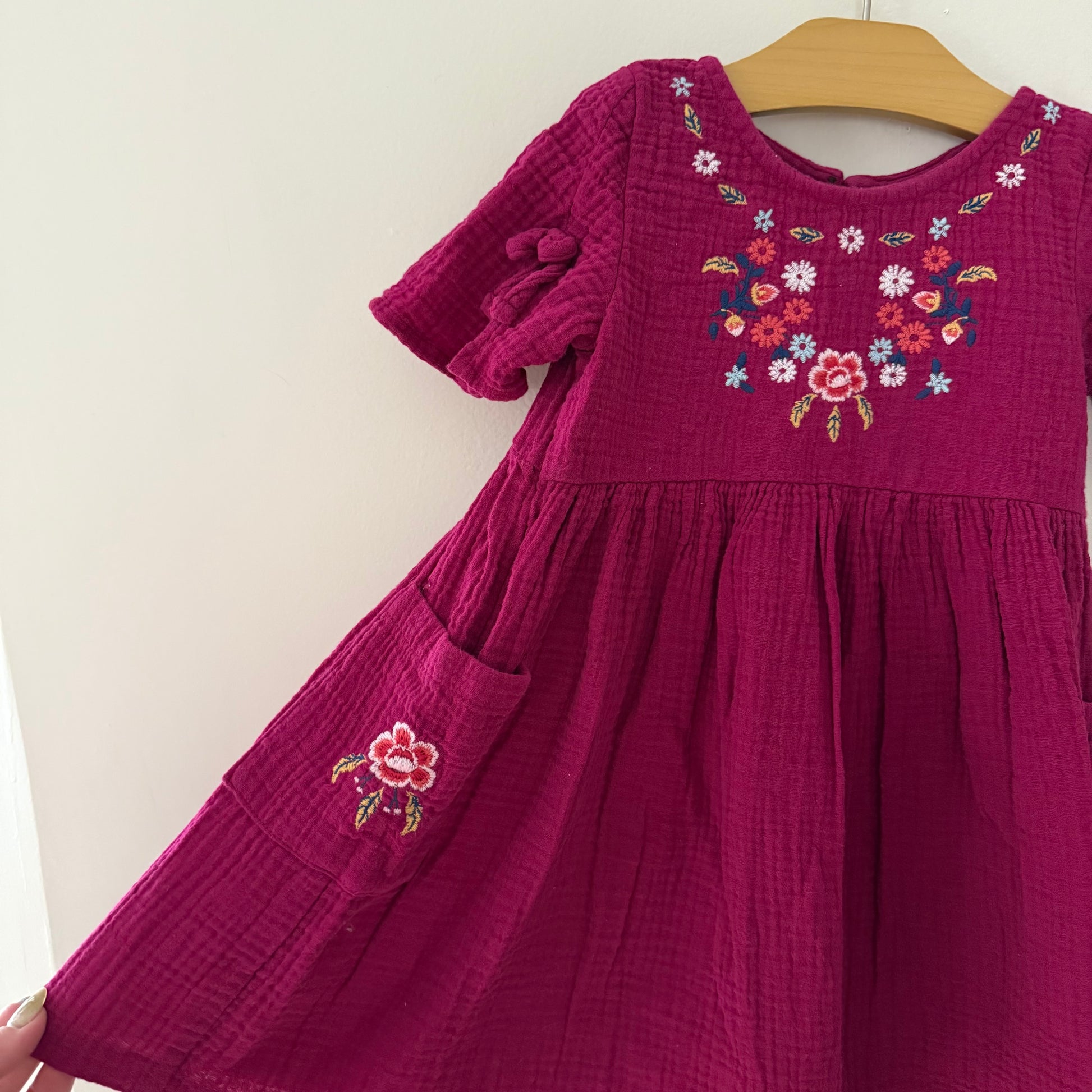 This dress has such great details. Lots of pretty embroidery. With split sleeves and pockets. It’s in great condition.