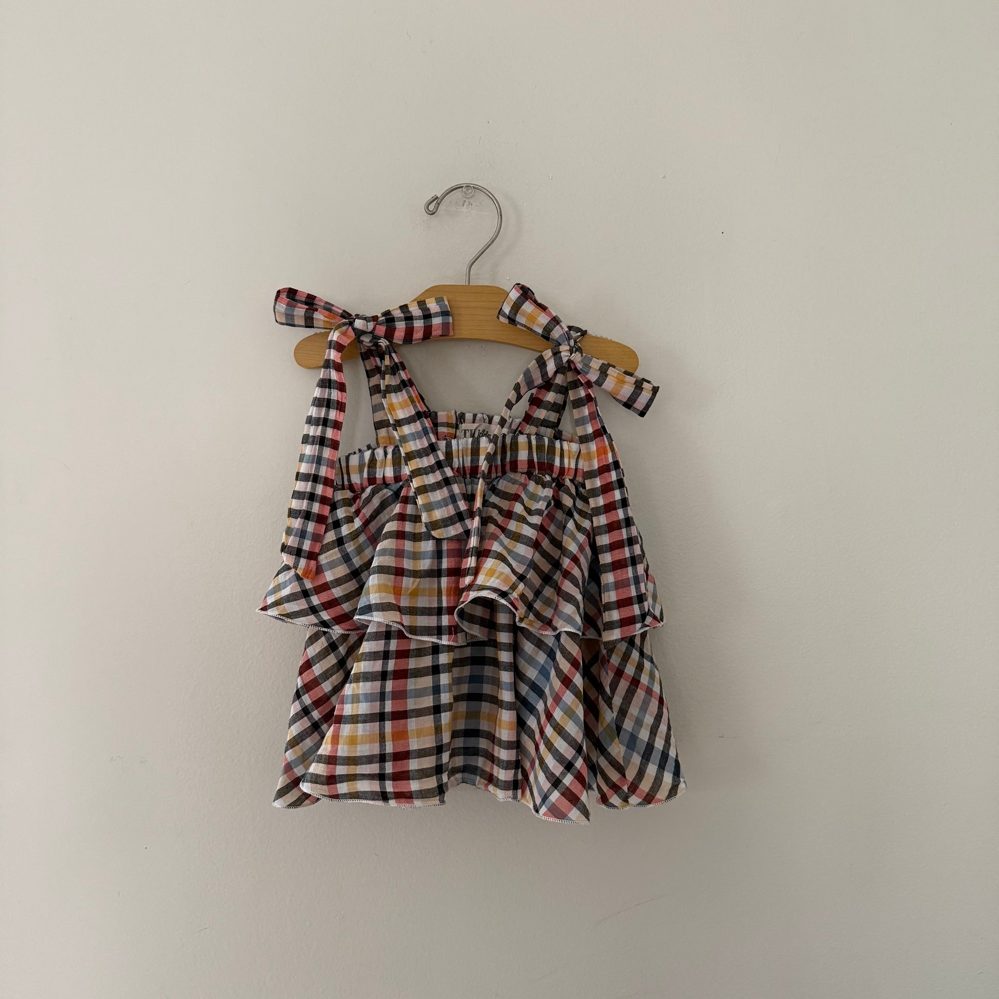 Insanely adorable plaid top with tier detail, adjustable bow straps and really cute fit. Size 4T. Great condition.
