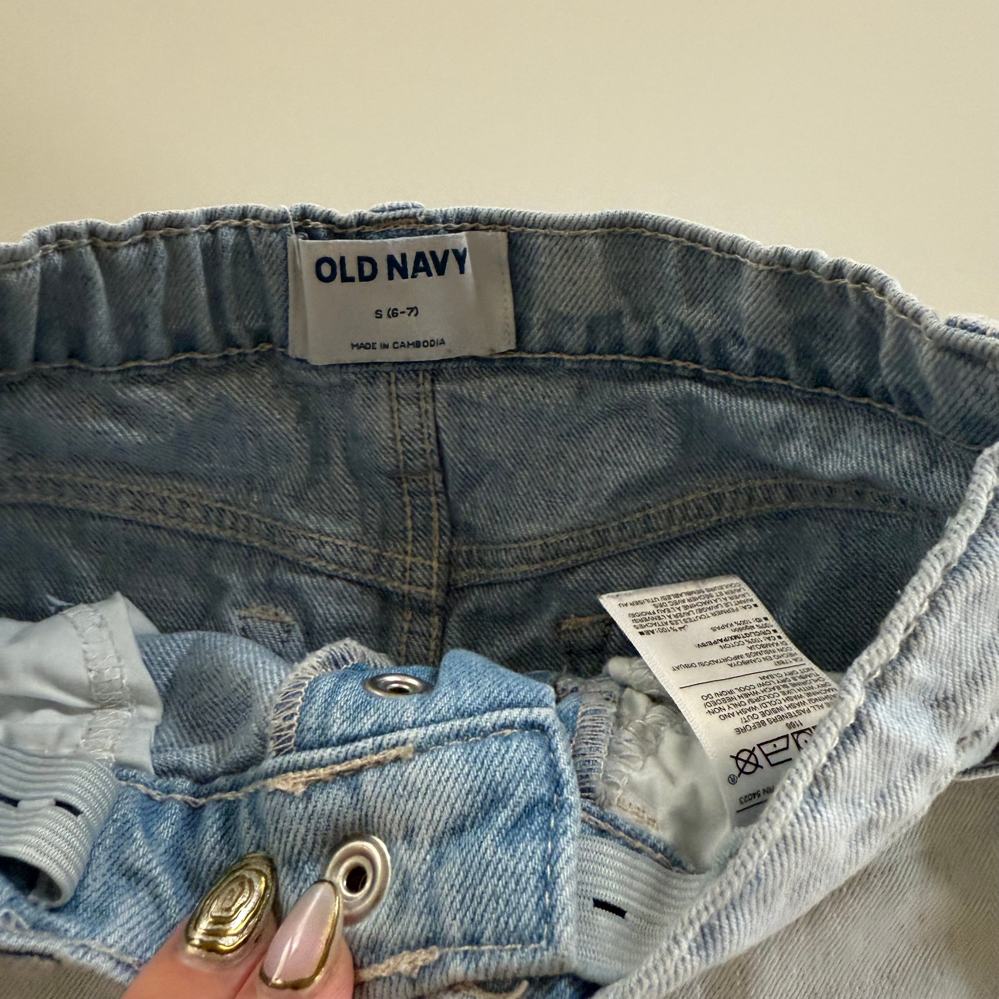 Light wash denim skirt with snap button closure and adjustable waist. Great condition.